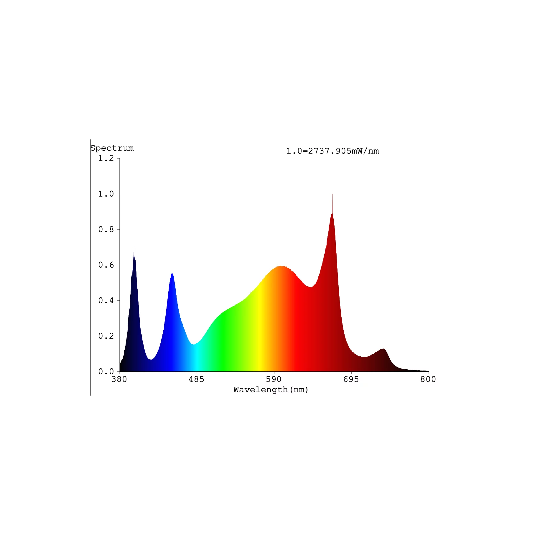 - Spektrum: 385–730 nm (UV-A bis Infrarot)