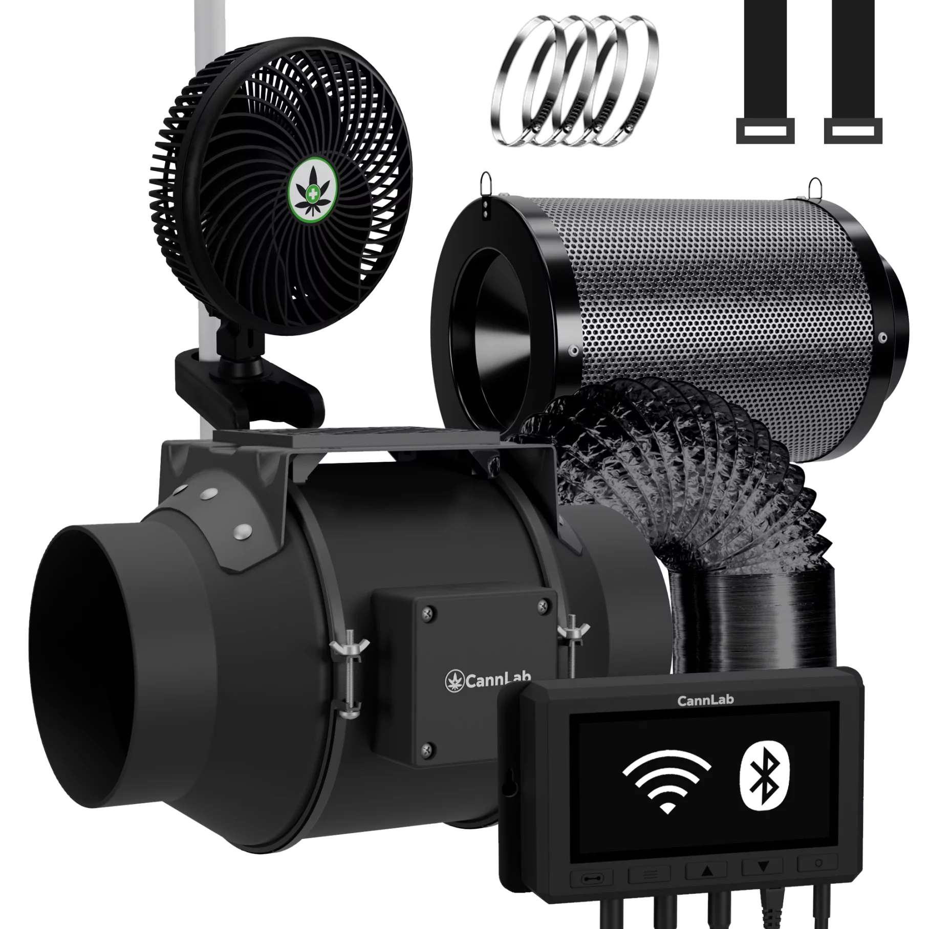 Kit de ventilation Cannlab IQ-6 + ventilateur à clipser - Ventilateur EC en ligne 6" avec contrôleur WiFi & filtre à charbon act