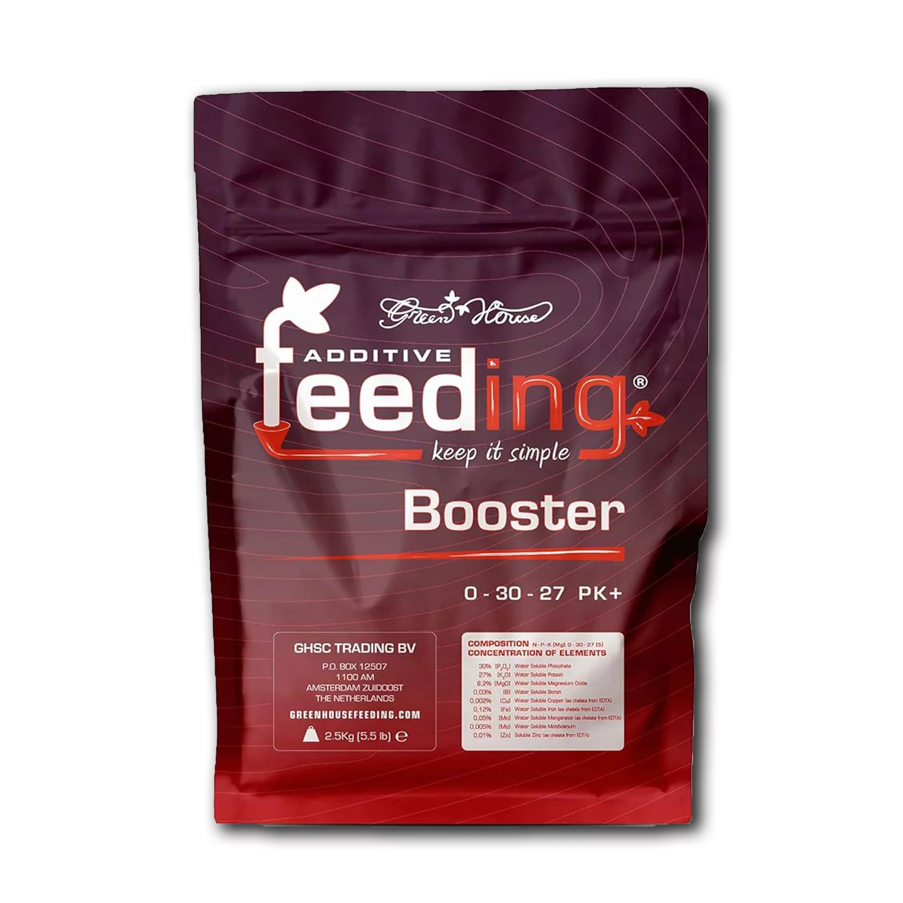 Green House Feeding Booster s'utilise pendant la phase de floraison. Il suffit de mélanger la poudre avec de l'eau et d'arroser les plantes comme d'habitude. Le dosage dépend de la taille des plantes et du substrat.